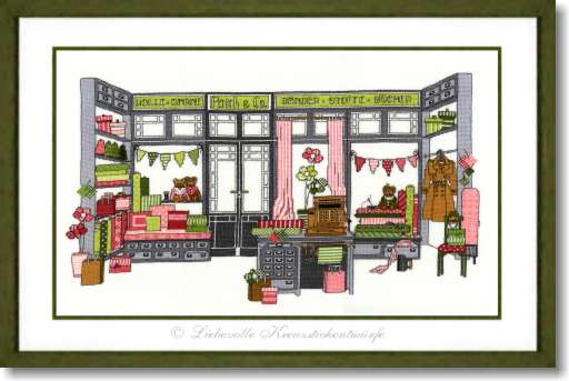 Stoffladen, grün-rosé - Bilder Schneidern und Basteln