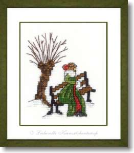 Mädchen auf Bank, rot-grün - Minis Weihnachten , Winter und Wintersport