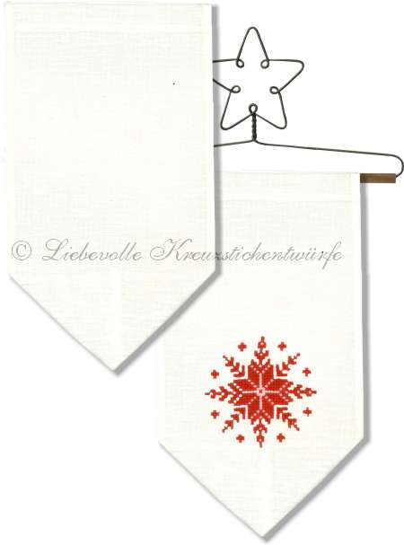 Fertig genähter Behang aus hellem Leinen zum Besticken. Am oberen Ende ist ein Tunnel eingearbeitet, der untere Teil ist zu einer Spitze ausgearbeitet. Der Behang ist ca 14 cm breit und ca 30 cm lang - gemessen vom Tunnelbeginn bis zur Spitze. Sehr hübsch können unsere Minimotive auf den Behang gestickt werden. Einen tollen Akzent setzt ein passender Drahtbügel als Aufhängung. Achtung: Farbabweichungen sind durch die shop Darstellung möglich