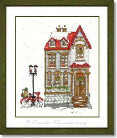 Winterhaus 1, rot-grün - Bilder Weihnachten, Winter und Wintersport