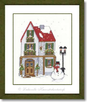 Winterhaus 4, rot-grün - Bilder Weihnachten, Winter und Wintersport