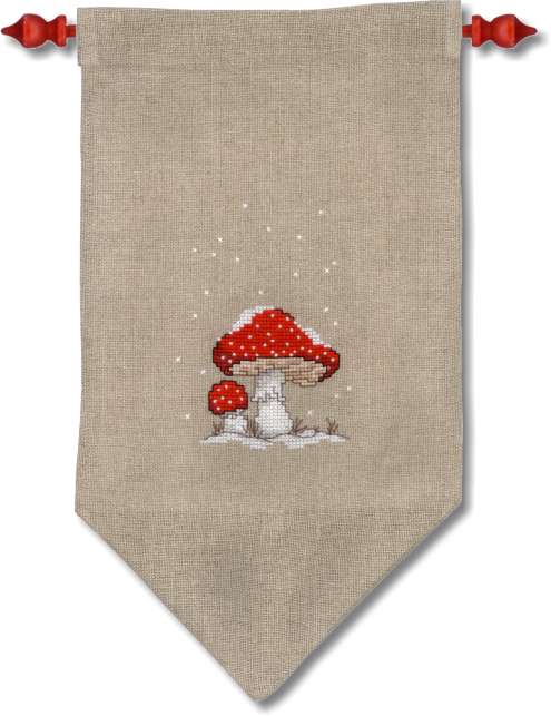 Wenn Ihnen unser Dekorationsvorschlag gefällt - das Motiv gestickt auf einen fertig genähten Behang und bestückt mit einer farblich passenden Holzstange, dann können Sie den Behang und auch die Holzstange separat dazubestellen.