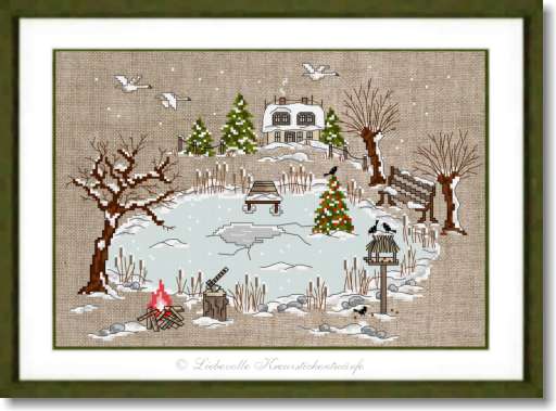 Haus am See im Winter, dunkel - Bilder Weihnachten, Winter und Wintersport